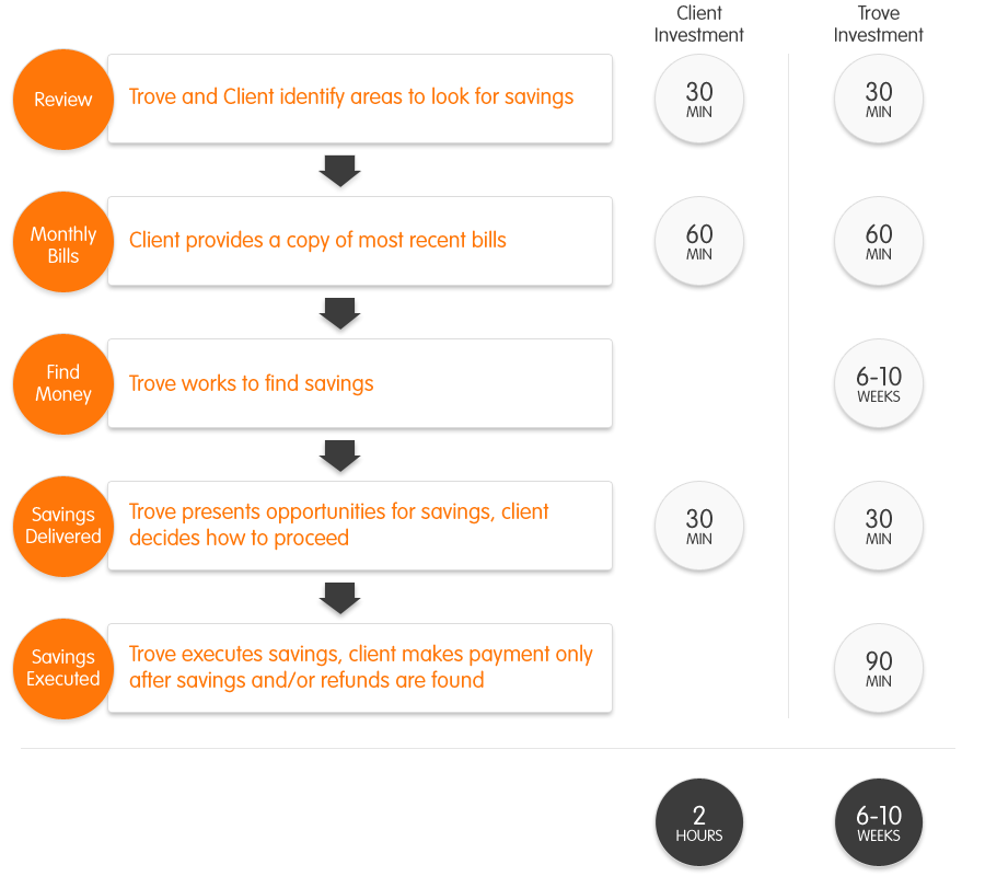 Trove's unique methodology was designed to adjust to the needs, size, and preferred time investment of our clients. Outlined below is an overview of the process and time investment for a typical engagement: